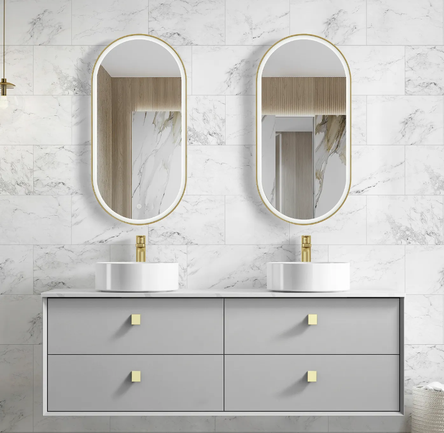 Bondi 900mm Satin White Fluted Wall Hung Curve Vanity