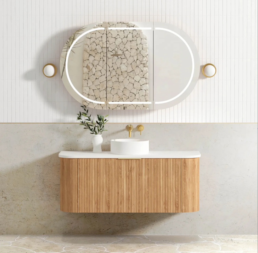 Bondi 1200mm Woodland Oak Fluted Curve Vanity