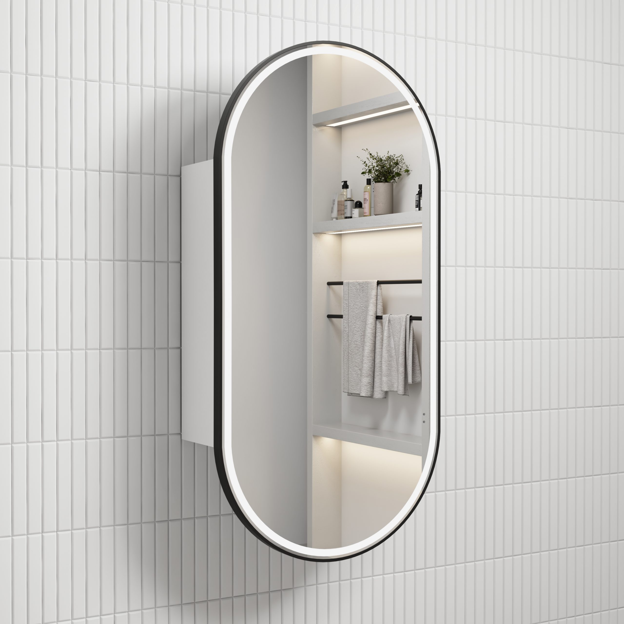 Beau Monde LED Shaving Cabinet redefines bathroom elegance. Its sophisticated design integrates LED lighting, providing functional illumination for grooming tasks. With ample storage and a contemporary aesthetic, this cabinet merges style and practicality, complementing any modern bathroom space.