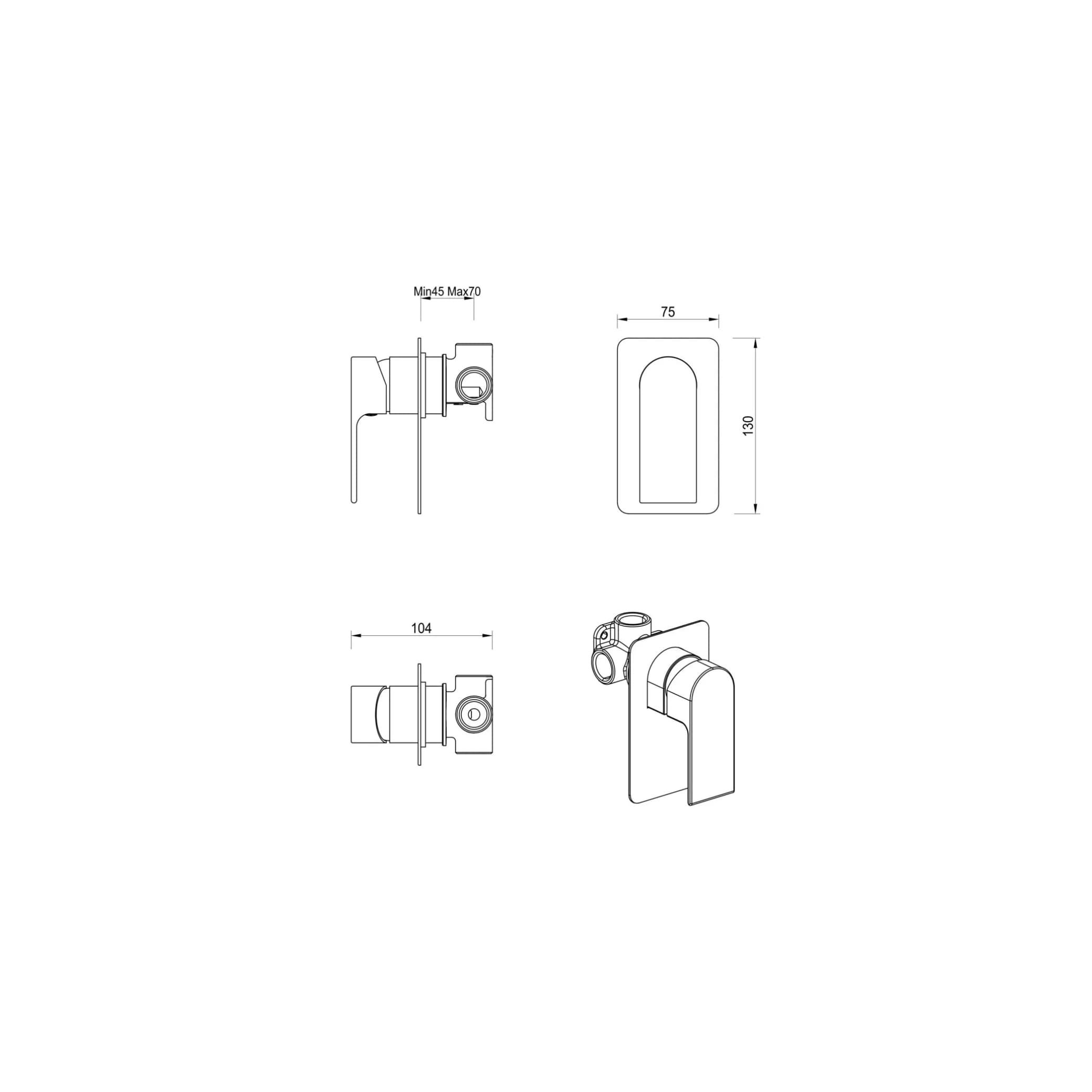 Kaza Shower Mixer Diverter – 1P – TRIM KIT ONLY