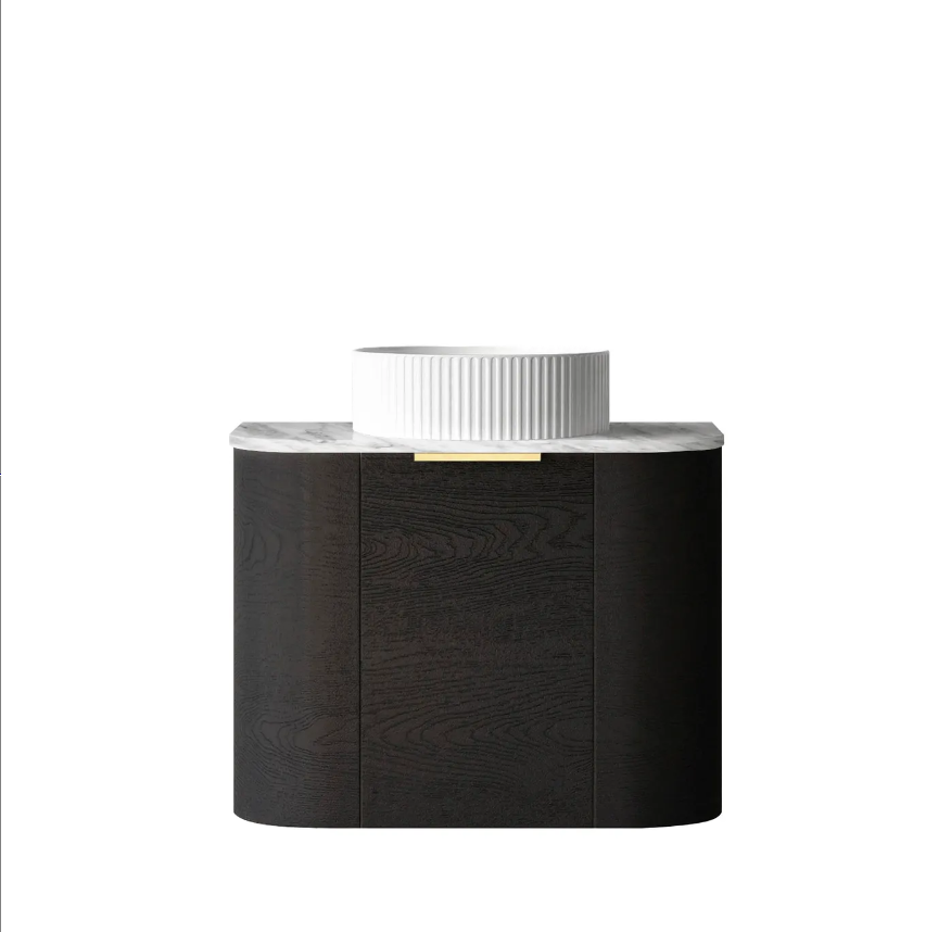 Bondi 600mm Black Oak Wall Hung Curve Vanity