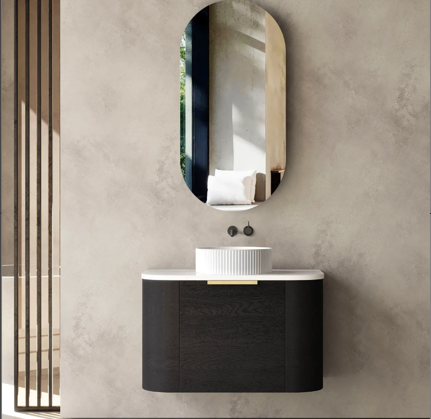 Bondi 750mm Black Oak Wall Hung Curve Vanity
