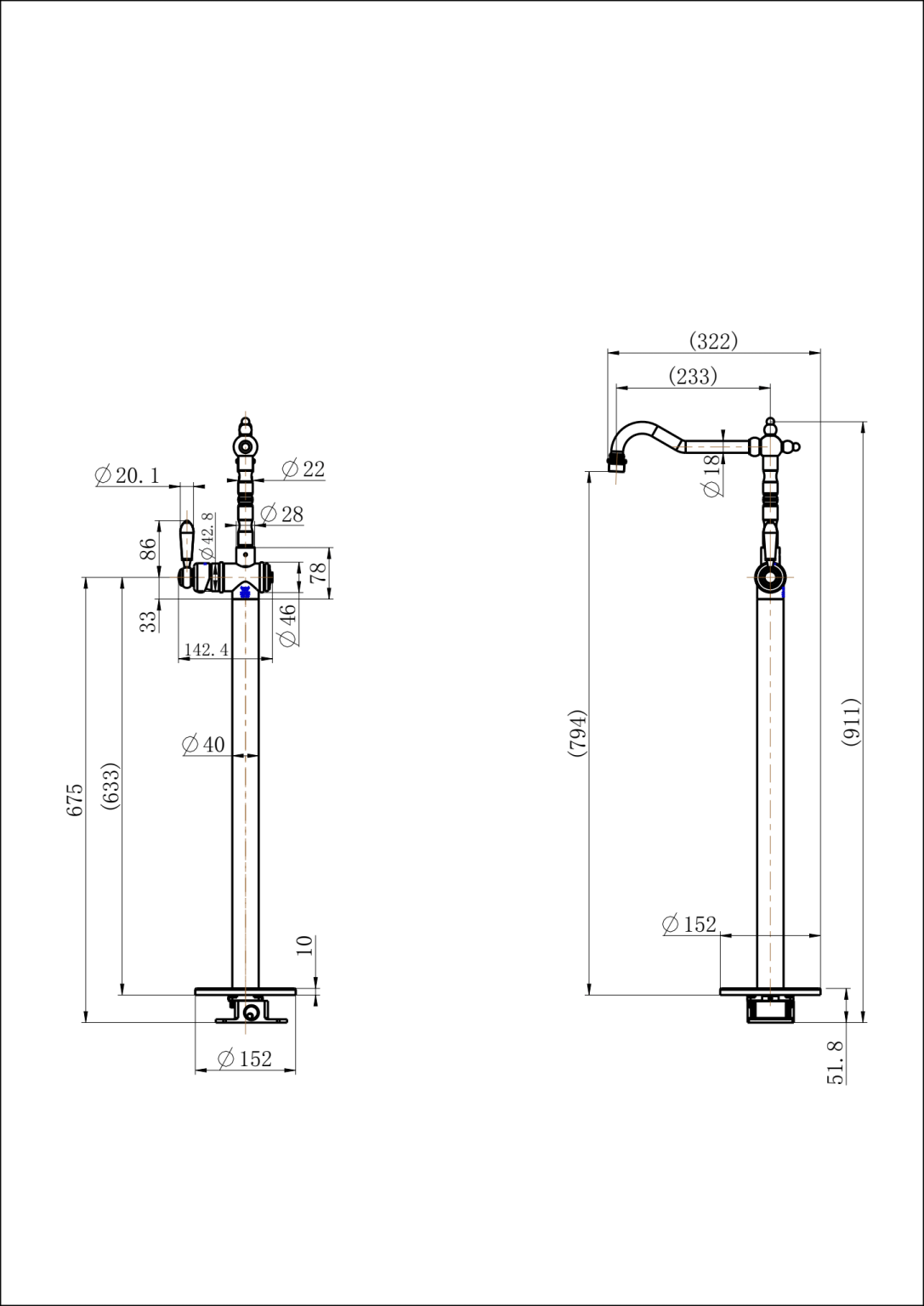Bordeaux Freestanding Bath Mixer with Hand Shower