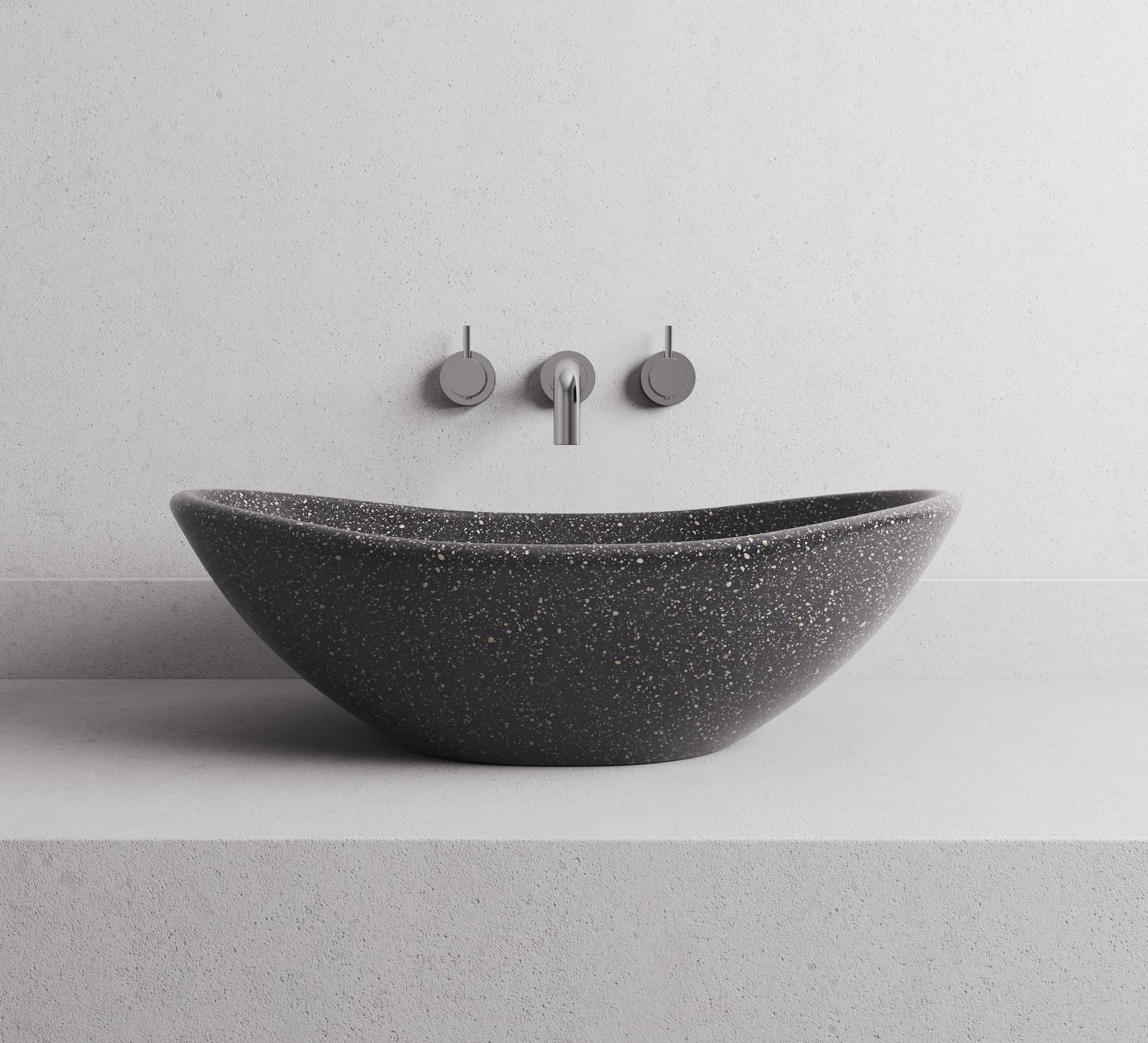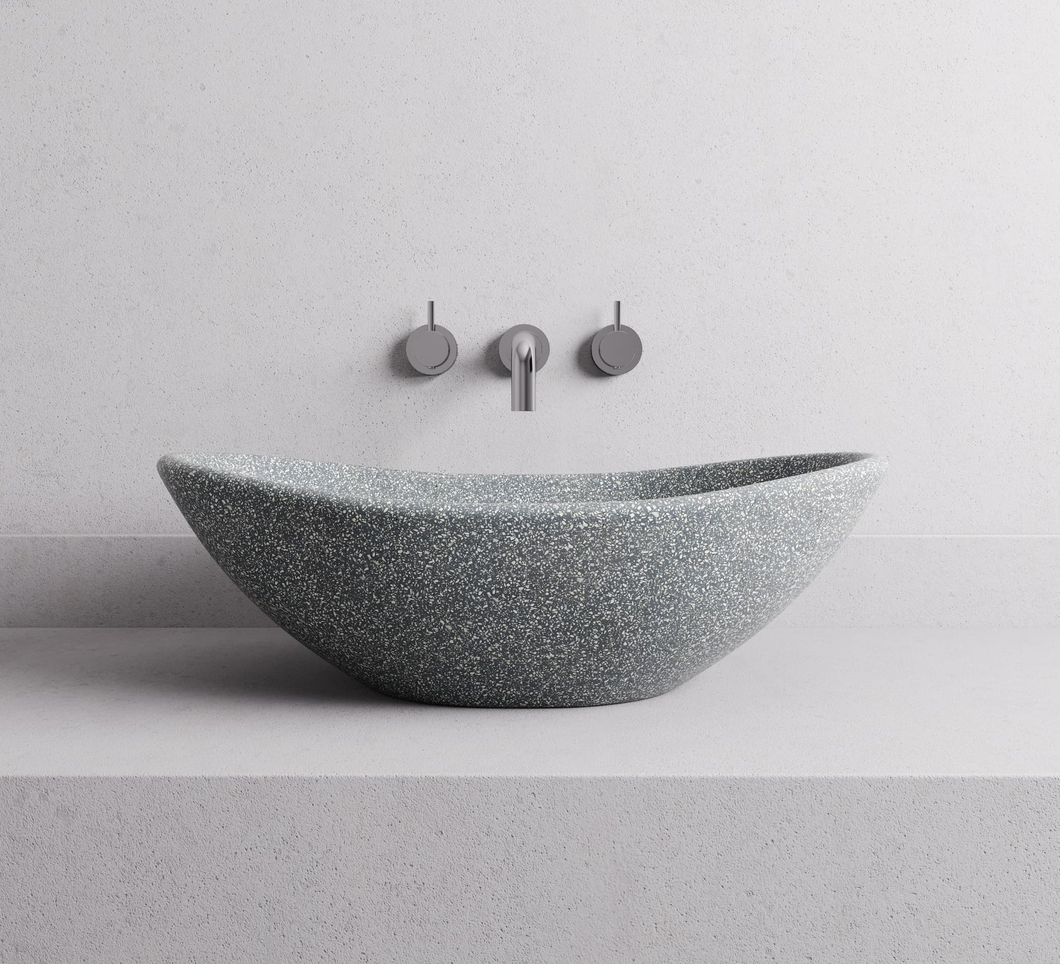 Introducing the Esther Basin, a stunning embodiment of tranquility and style. With dimensions of 59.5cm in length, 39.5cm in width, and 19cm in height, this basin is one of the largest in our collection, offering a unique hammock-like shape that evokes relaxation and serenity. Crafted from durable, luxurious terrazzo, its natural stone finish adds elegance and sophistication to any bathroom, transforming the space into a soothing sanctuary. Whether you’re looking for a statement piece for a contemporary bathroom or a focal point for a spa-like atmosphere, the Esther Basin’s spacious design and captivating aesthetic will elevate your space with timeless beauty.