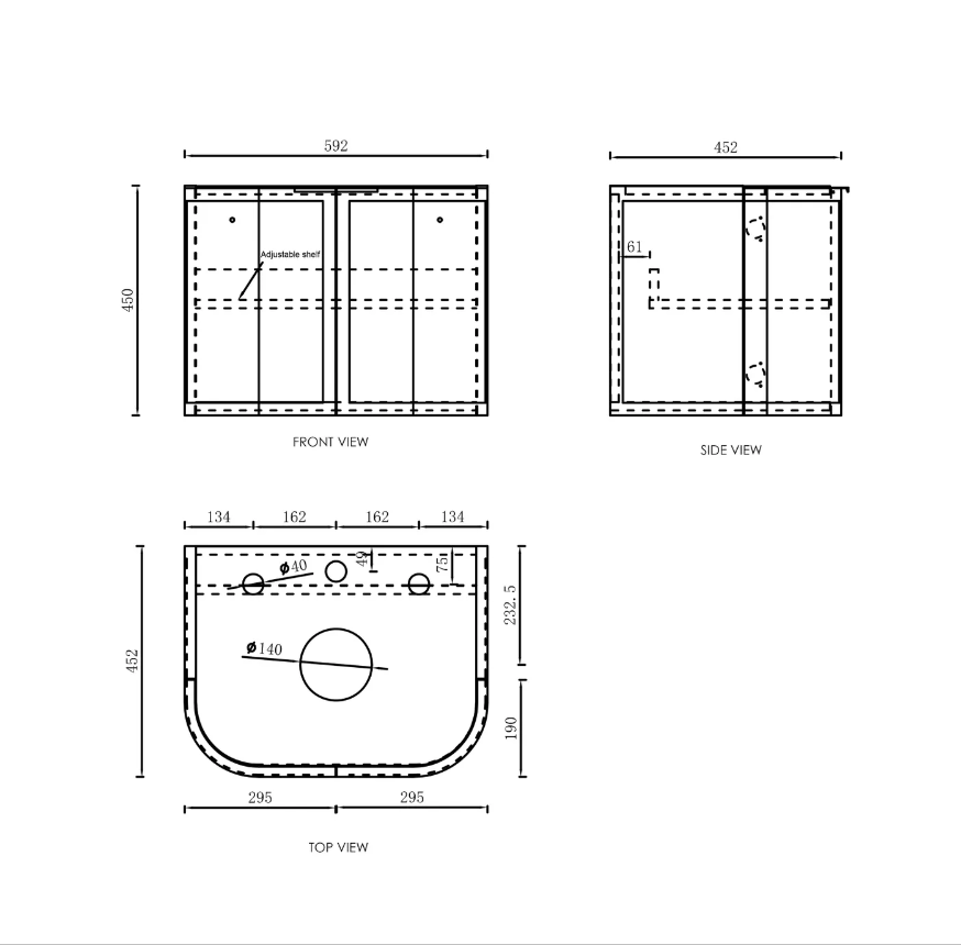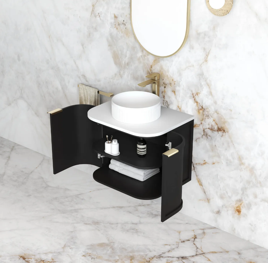 Hampshire 600mm Satin Black Wall Hung Curve Vanity