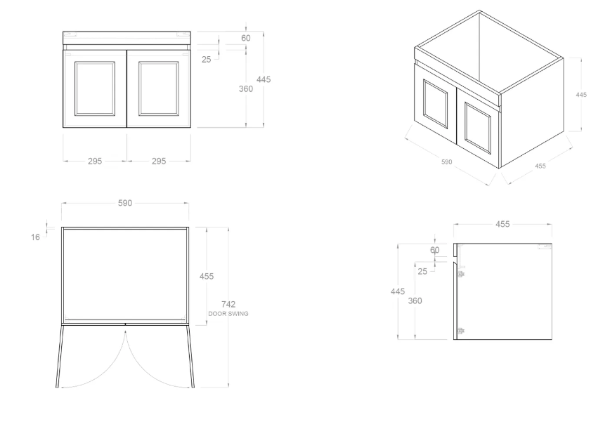 Hampton Mark II 600mm Satin Black Wall Hung Vanity