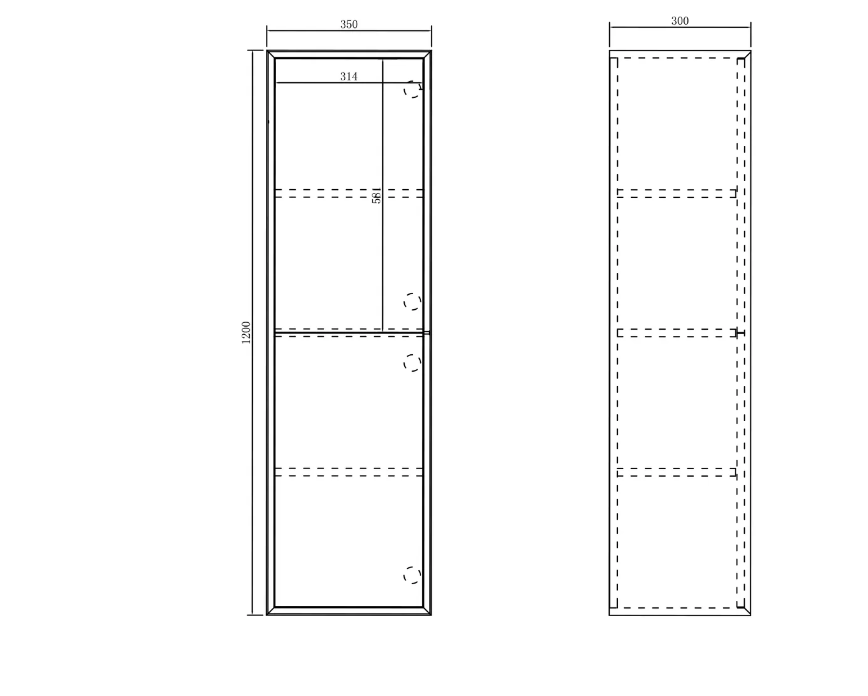 Dimensions 1200x350x300mm