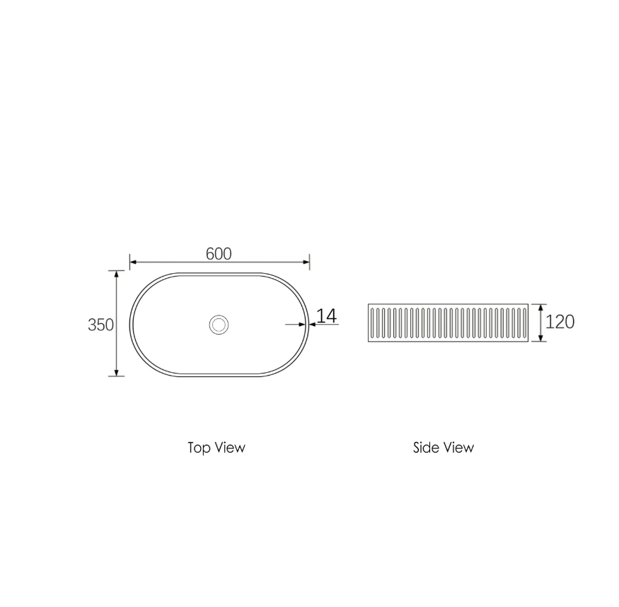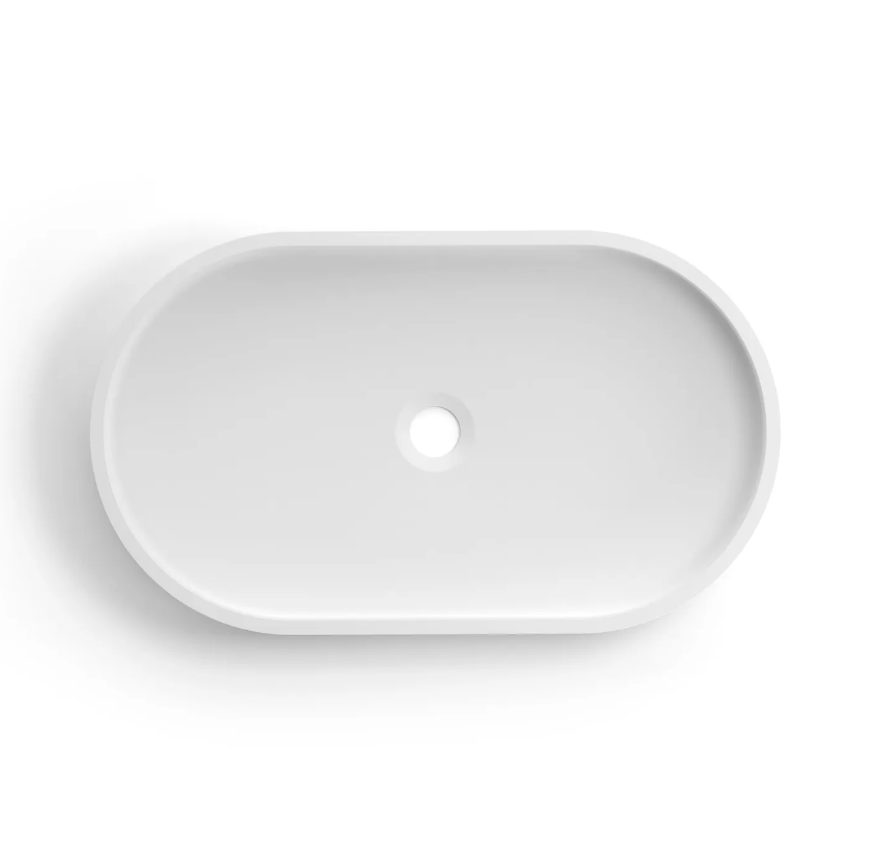 Hudson Oval 600x350x120 Concrete Fluted White Basin