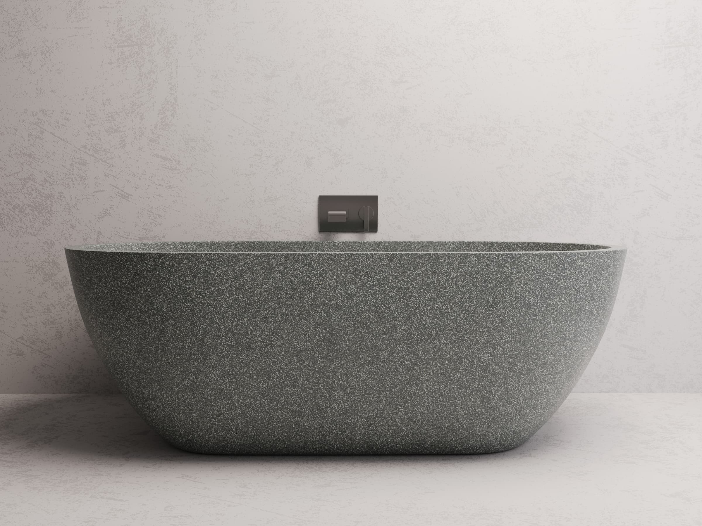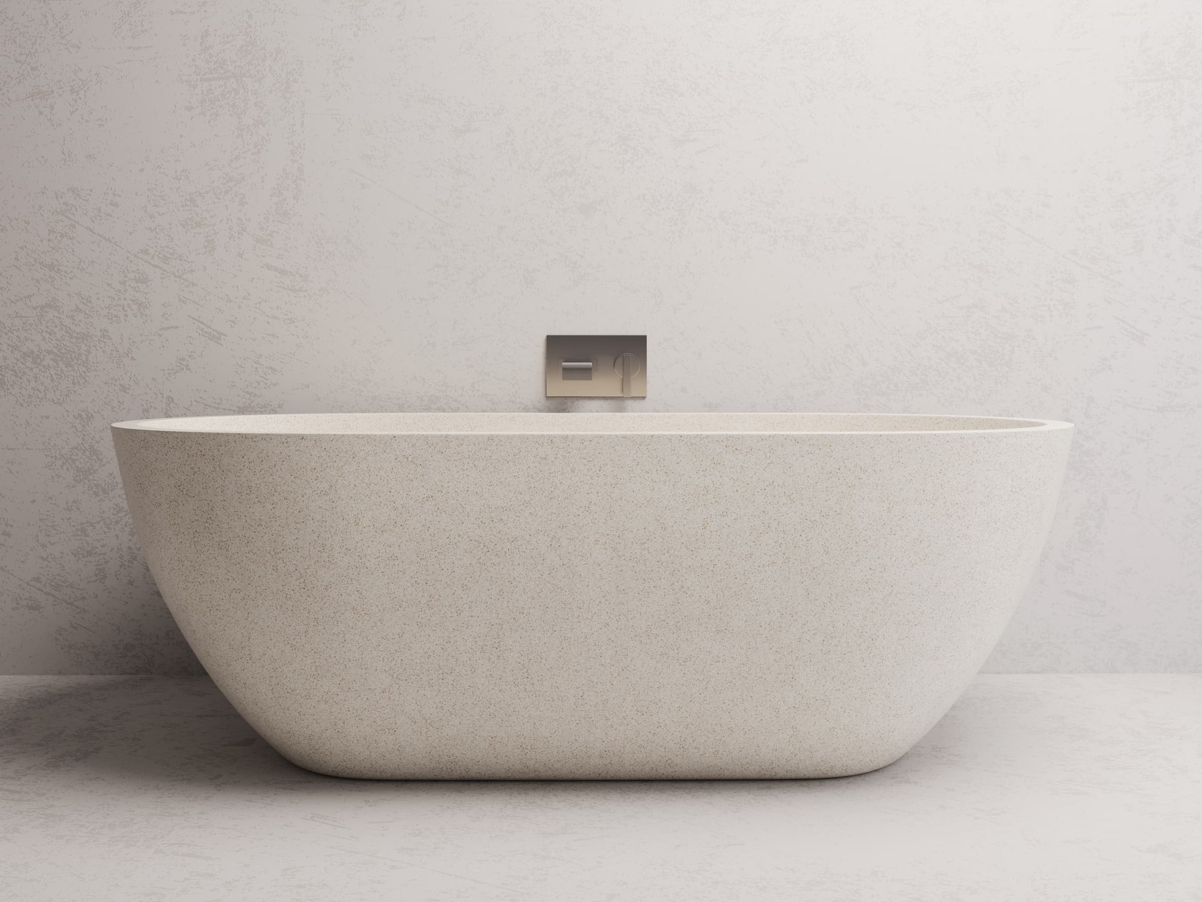 Indulge in the opulence of Madu Living with the contemporary freestanding Indy bath, a timeless oval design that exudes both elegance and functionality. Handcrafted from natural composite stone, the Indy tub features unique finishes that create an unparalleled, one-of-a-kind aesthetic, transforming your bathroom into a serene masterpiece. Its seamless blend of style and practicality allows it to effortlessly integrate into any existing decor, making it the perfect choice for those seeking luxury and comfort. Additionally, the Indy bath features a void underneath, offering space for the installation of a flexidinger if required. These can be ordered on request through us by contacting our team.Dimensions: 1500(L) x 750(W) x 550(H).