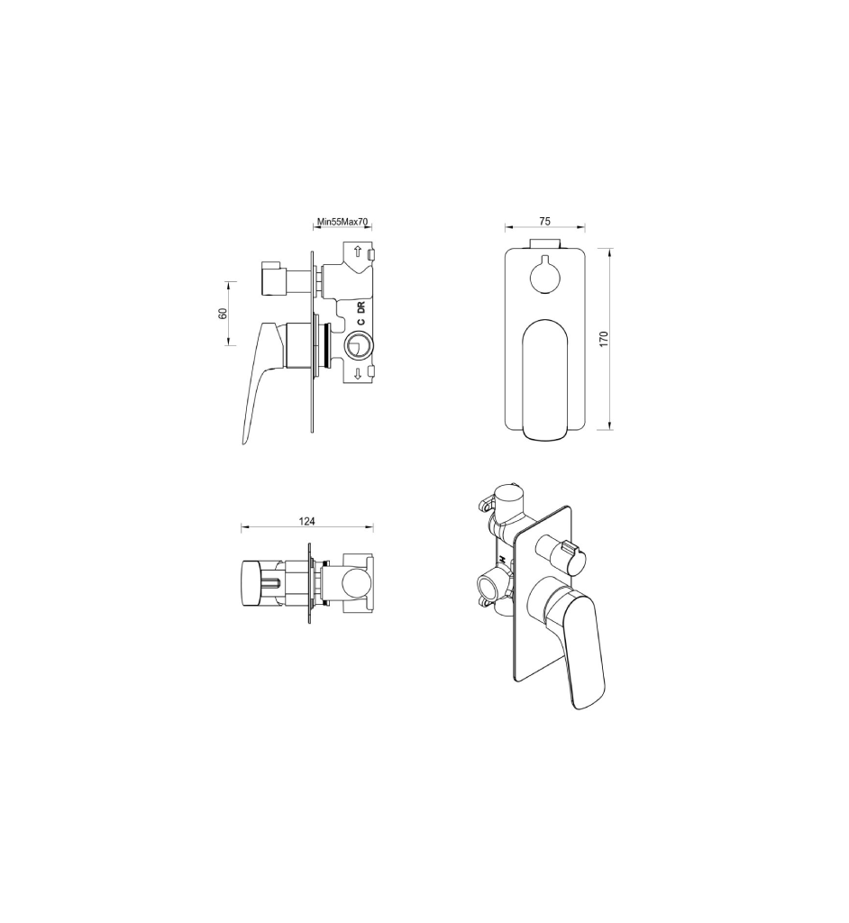 Kaza Shower Mixer Diverter – 1P – TRIM KIT ONLY