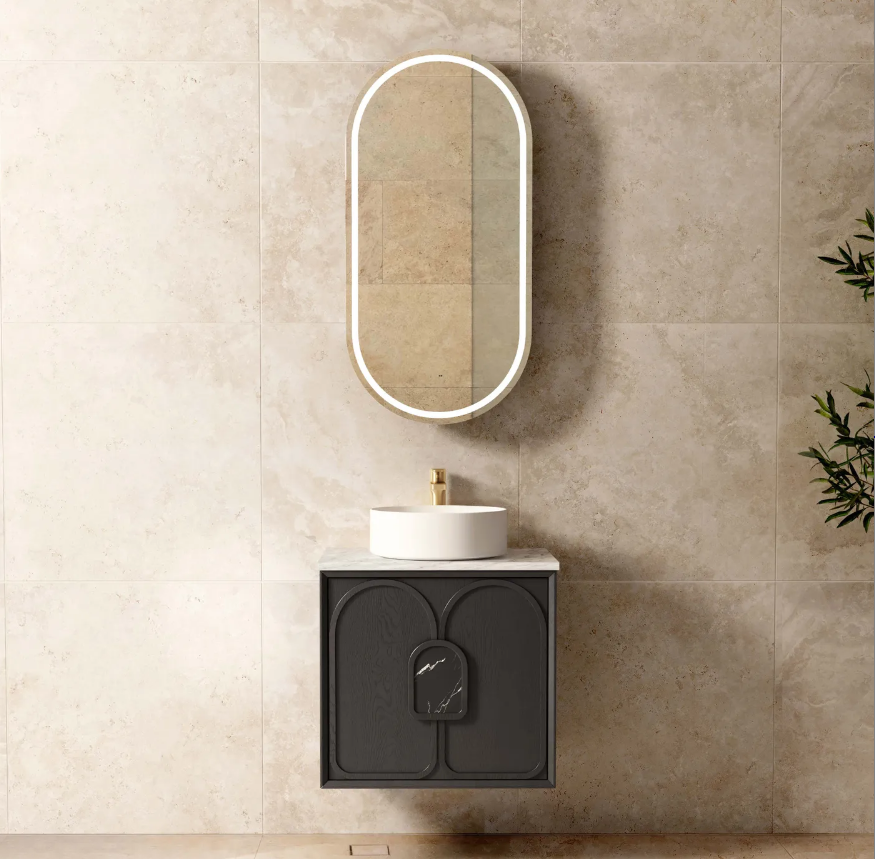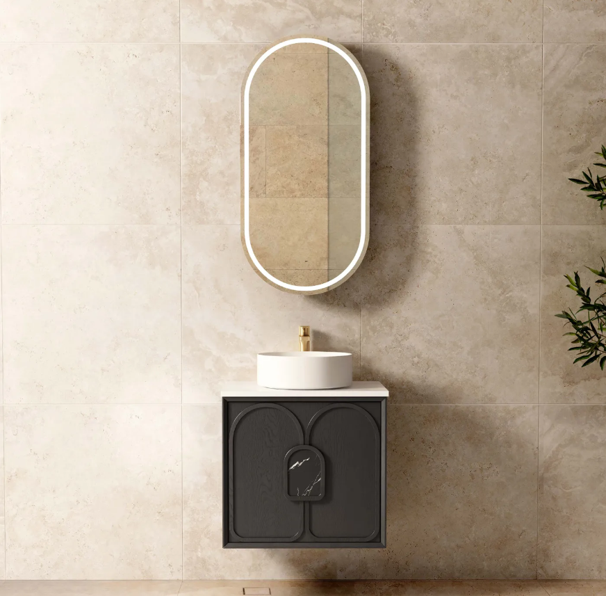 Laguna 600mm Black American Oak Wall Hung Vanity