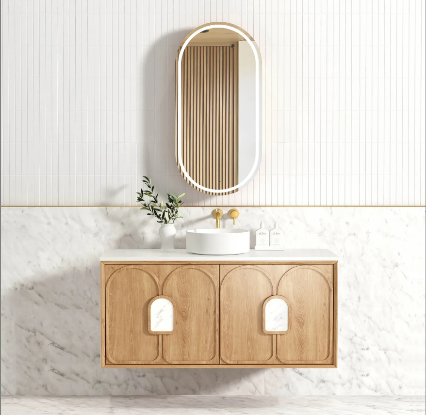Natural Properties Our vanities are crafted with a natural timber look finish, providing a beautiful and authentic wood texture that adds warmth and character to any bathroom space. While we take every precaution to ensure colour consistency across our products, the inherent qualities of natural timber can cause slight variations in staining. This is due to the unique way each piece of wood responds to the staining process, making every vanity one of a kind. These natural differences are a feature of the product, adding to its charm and individuality. |