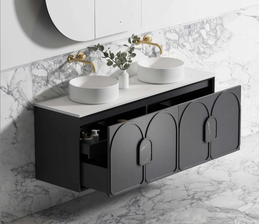 Havana 900mm Sable Walnut Fluted Wall Hung Fluted Curve Vanity