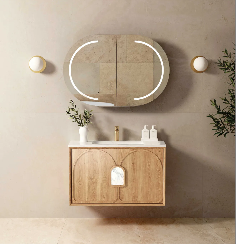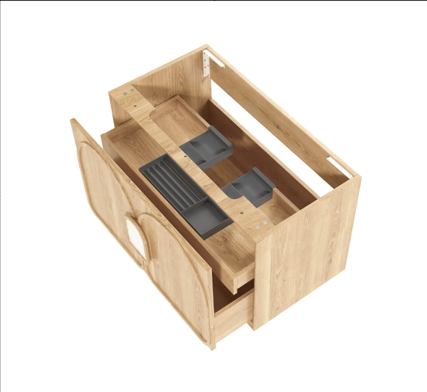 Natural Properties Our vanities are crafted with a natural timber look finish, providing a beautiful and authentic wood texture that adds warmth and character to any bathroom space. While we take every precaution to ensure color consistency across our products, the inherent qualities of natural timber can cause slight variations in staining. This is due to the unique way each piece of wood responds to the staining process, making every vanity one of a kind. These natural differences are a feature of the product, adding to its charm and individuality. |