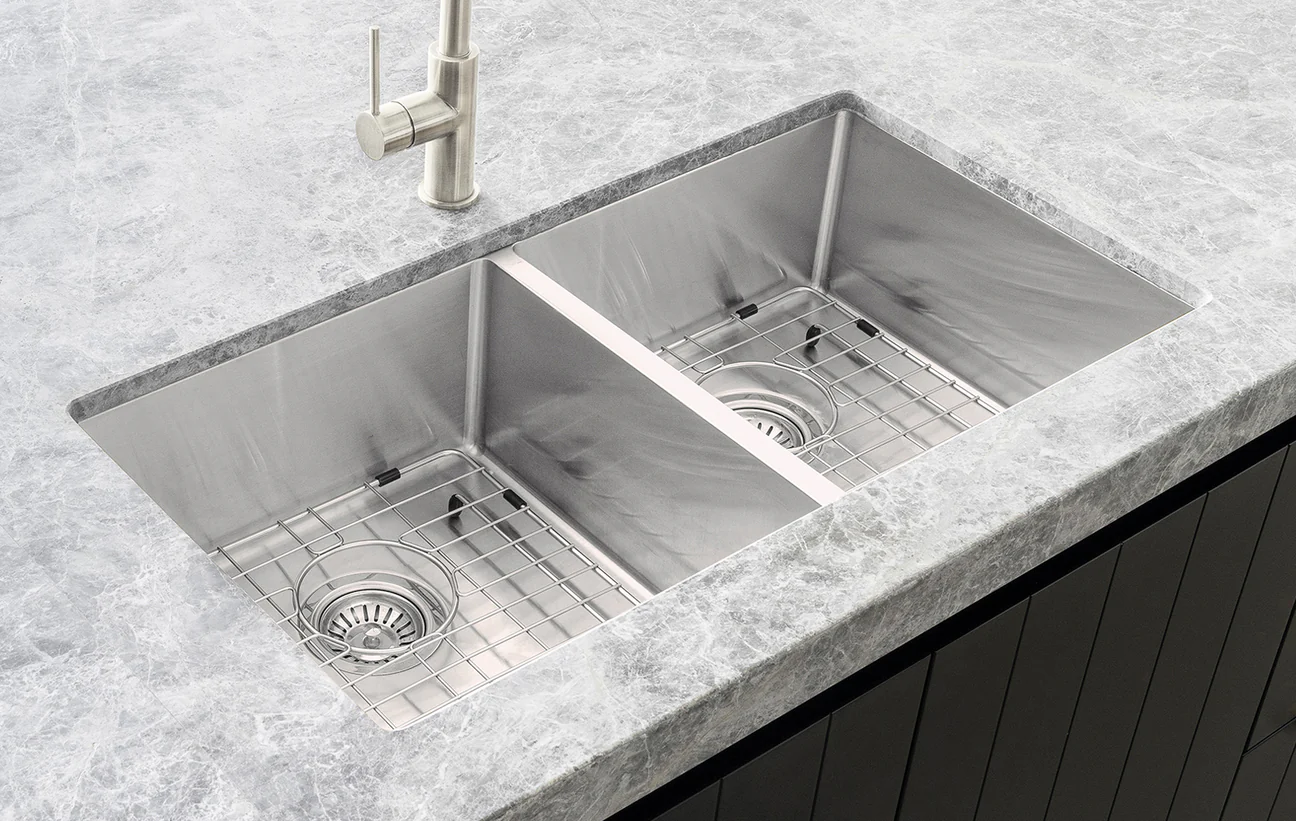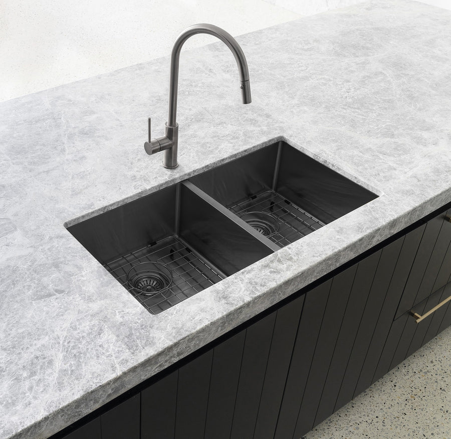 The Lavello Protection Grid, available in Gunmetal Black, Brushed Bronze Gold and PVD Brushed Nickel, takes care of your kitchen sink while drying your dishes at the same time. Simply place the bottom grid at the base of your Lavello sink to protect it from sharp force or impact.