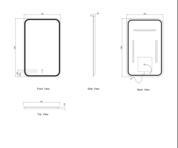 LED Newport 1200(W)x750(H)Mirror - Install Horizontal or Vertical