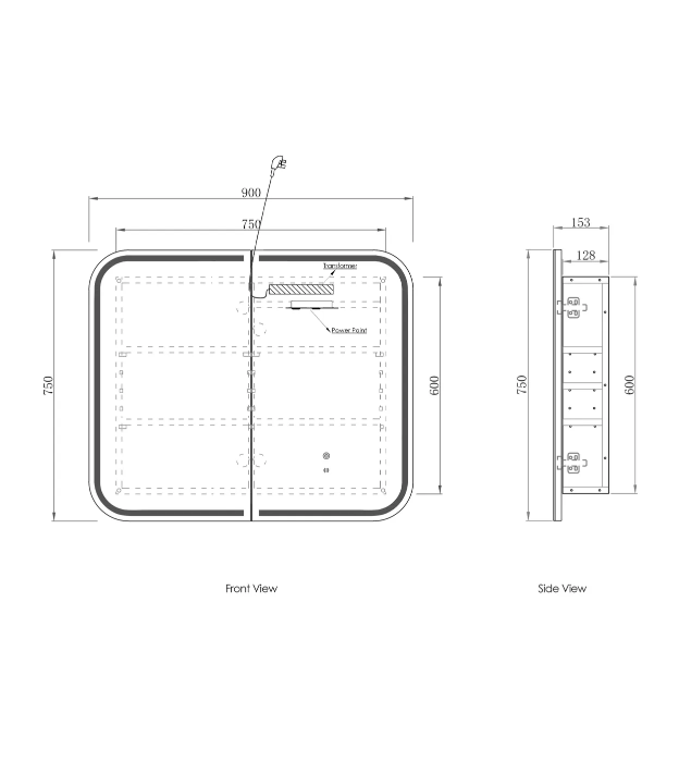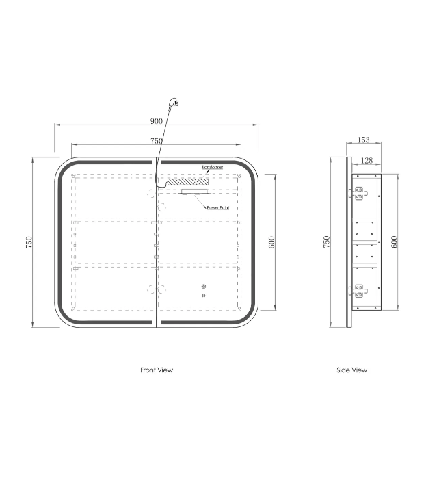 LED Newport 900(W)x750(H) Shaving Cabinet – Premium Edition