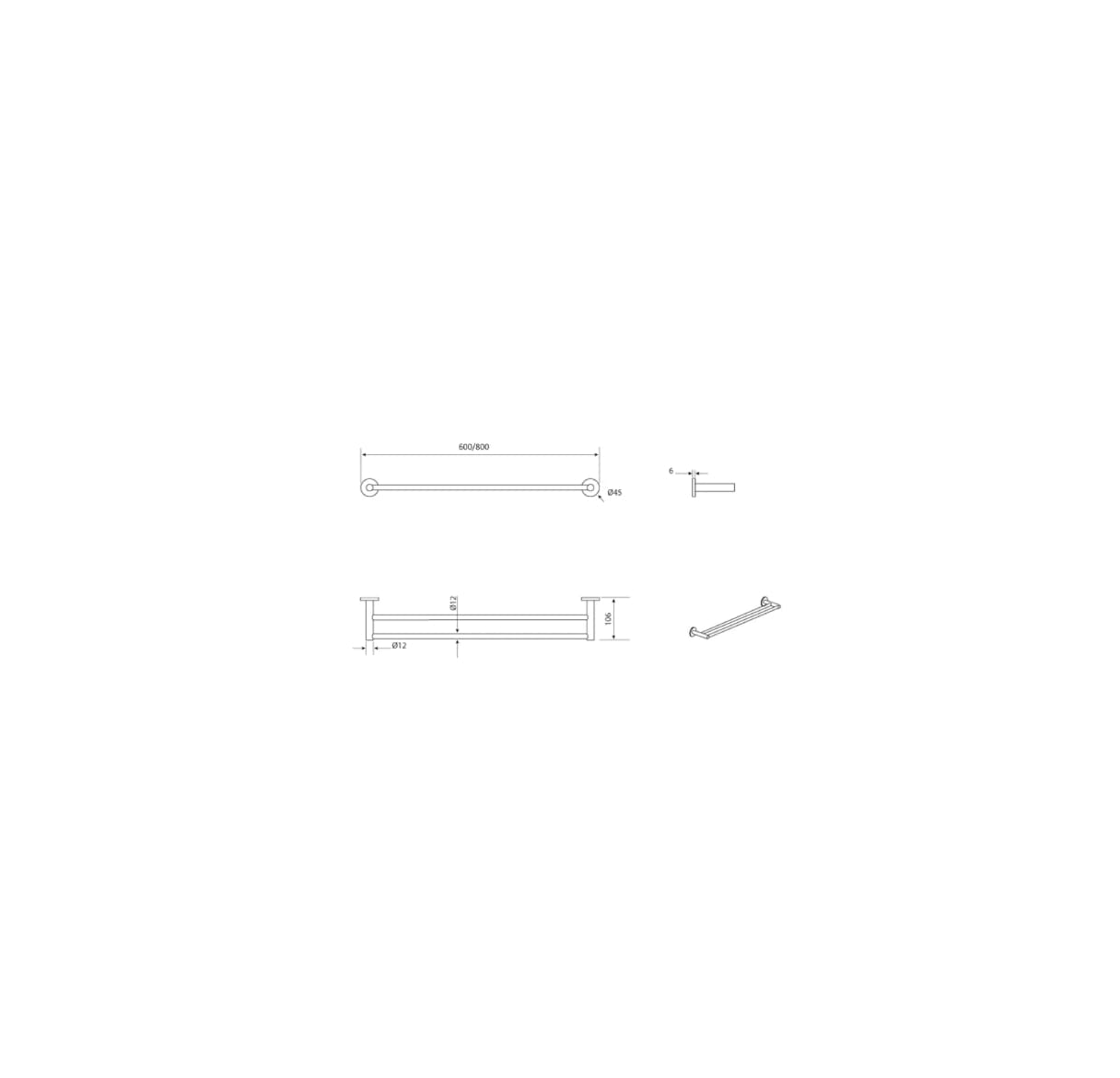Mica Double Towel Rail – 800mm/600mm