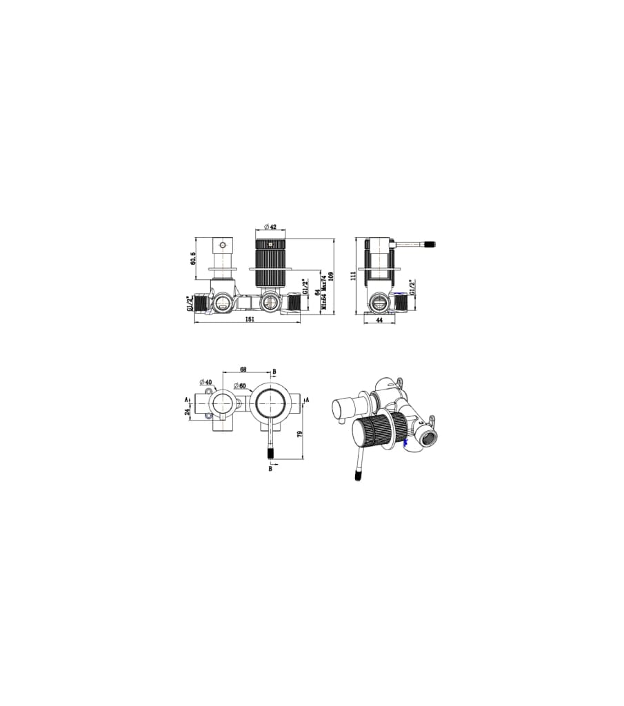 Mica Fluted Shower Mixer Diverter – Sideways