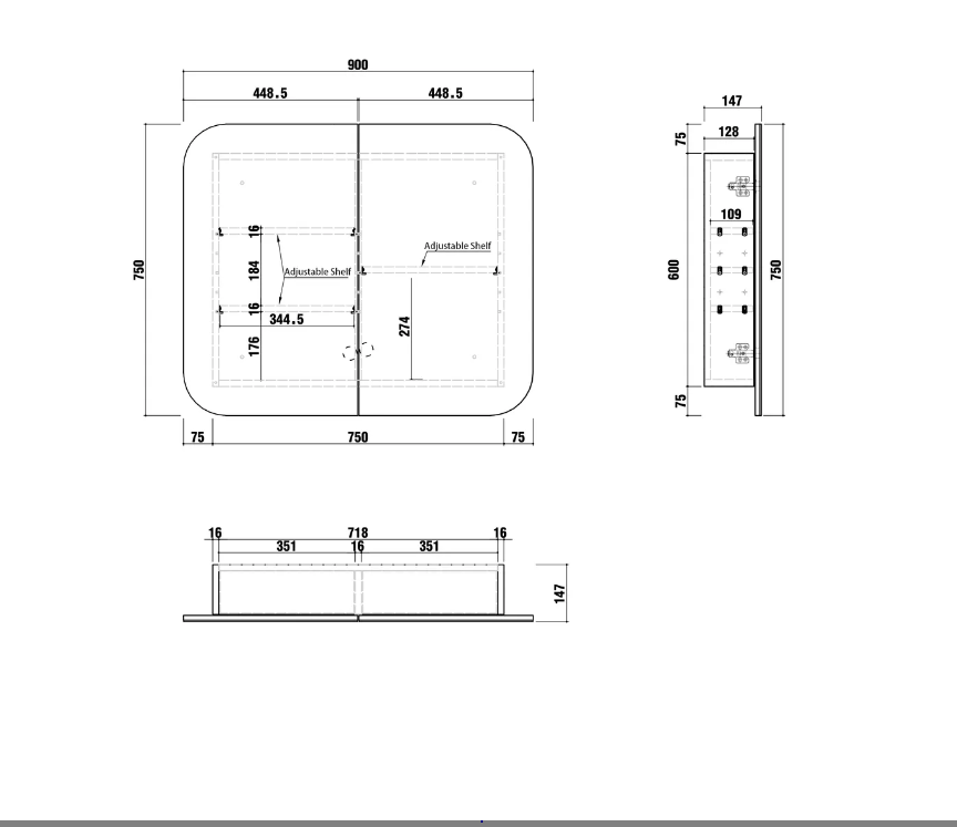 Newport 900×750 Shaving Cabinet