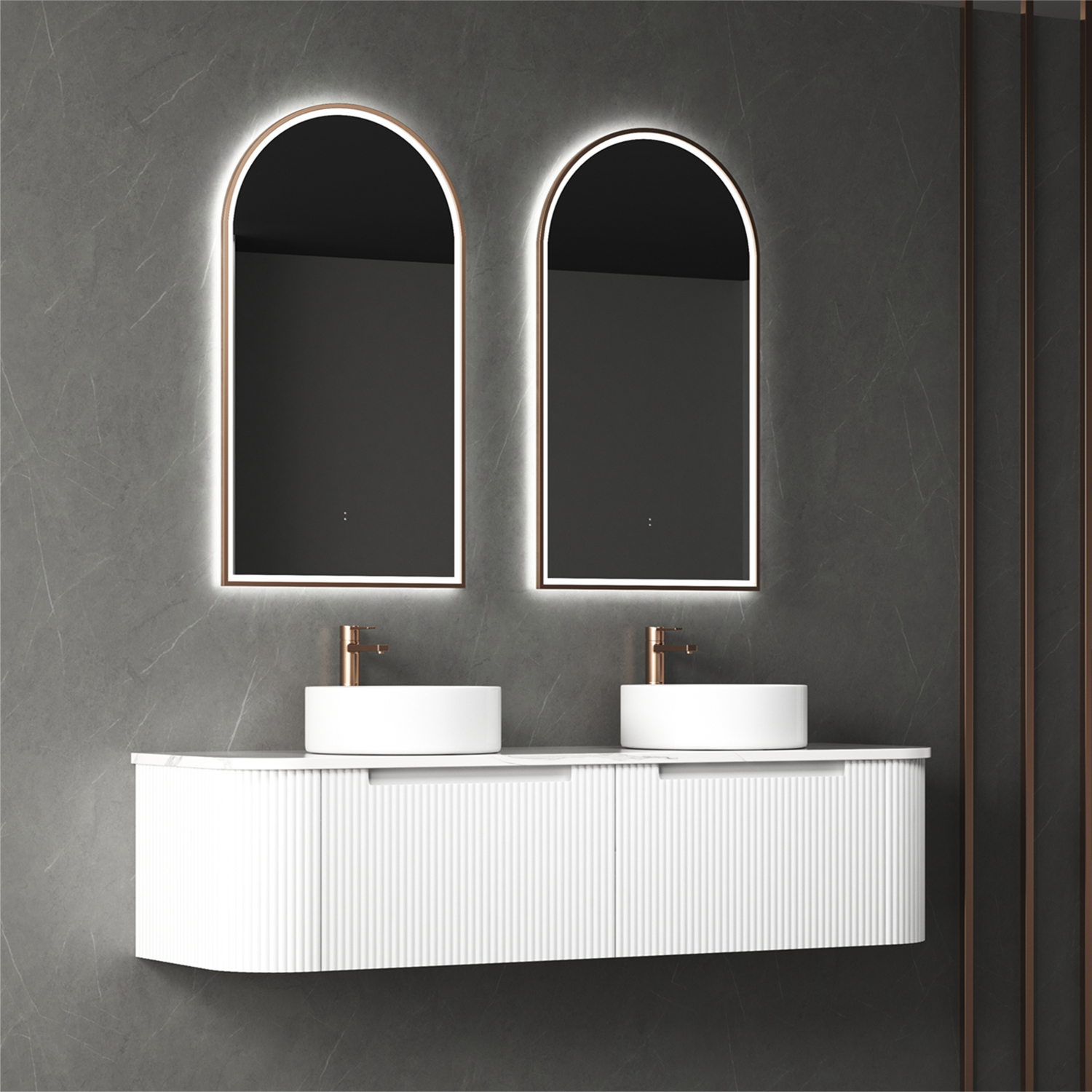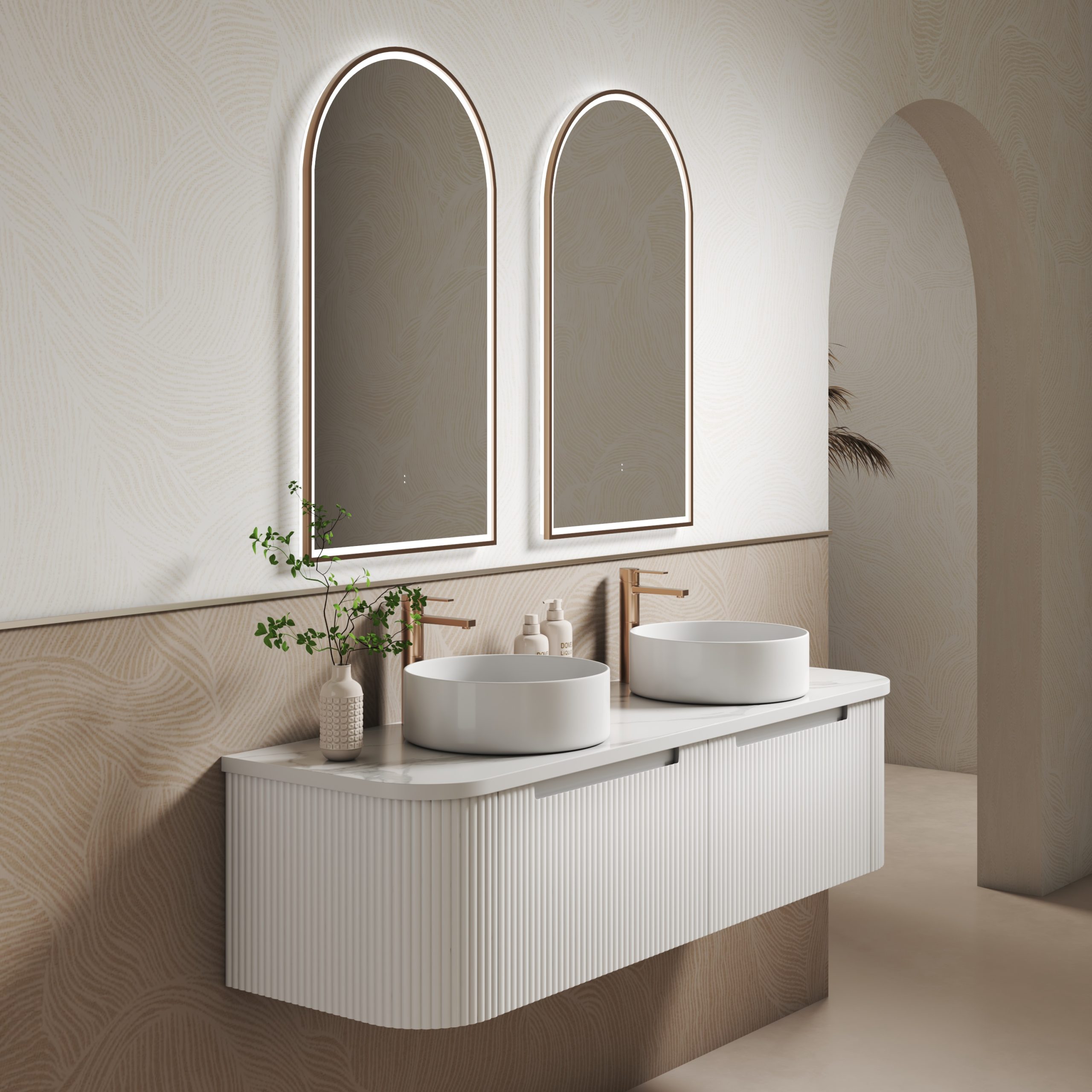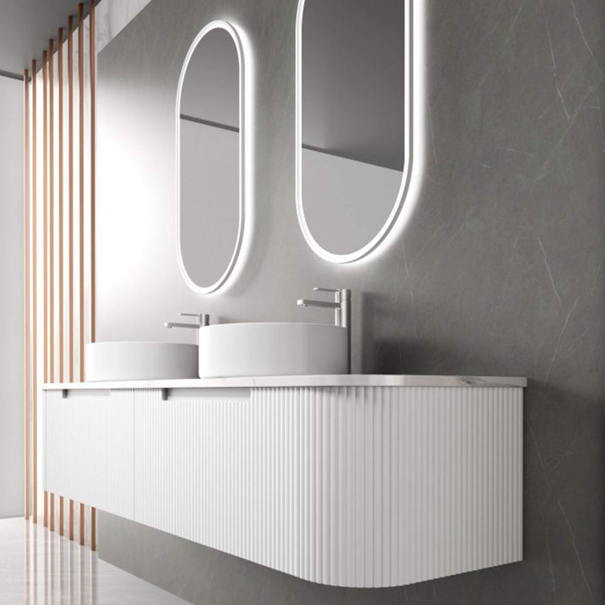 Havana 900mm Sable Walnut Fluted Wall Hung Fluted Curve Vanity