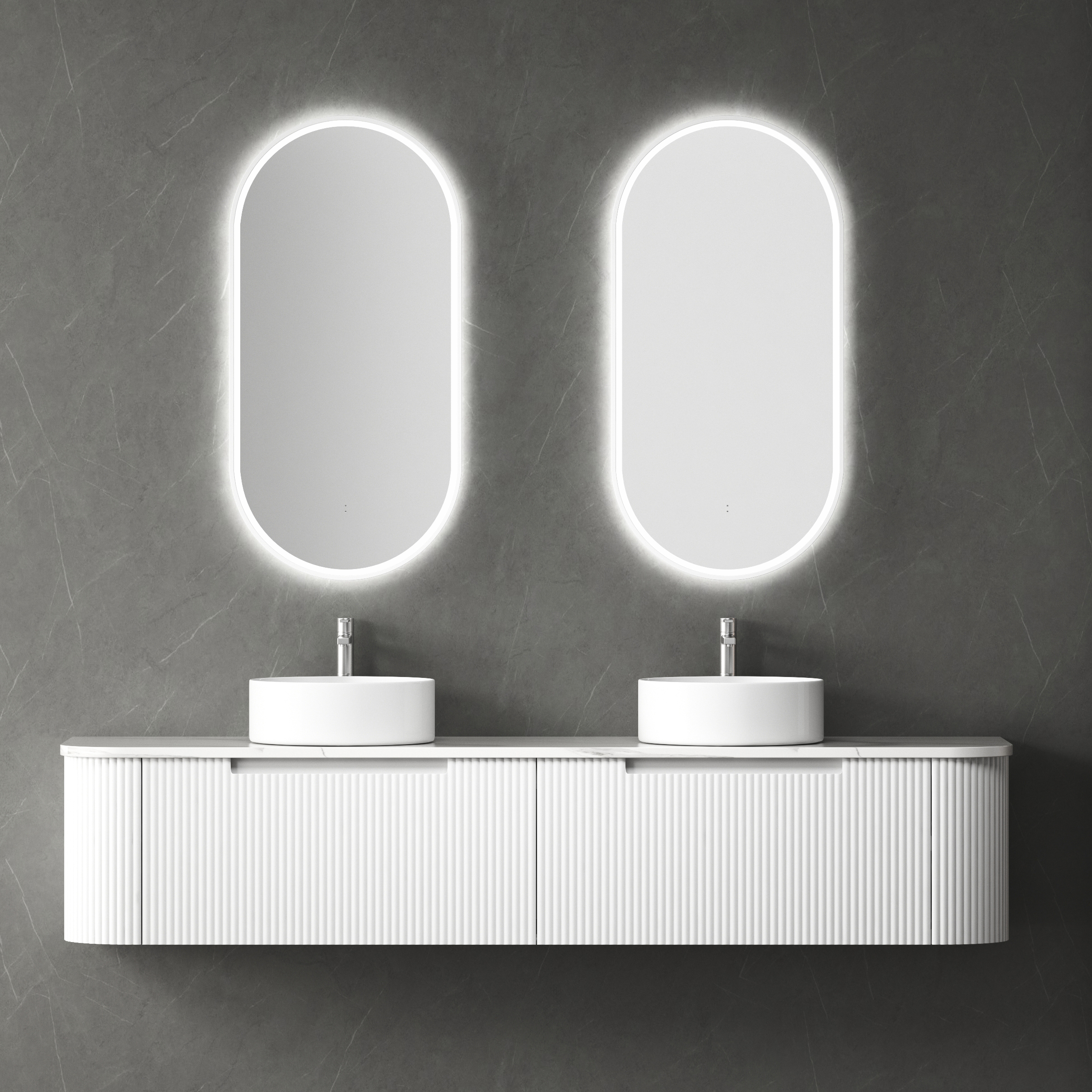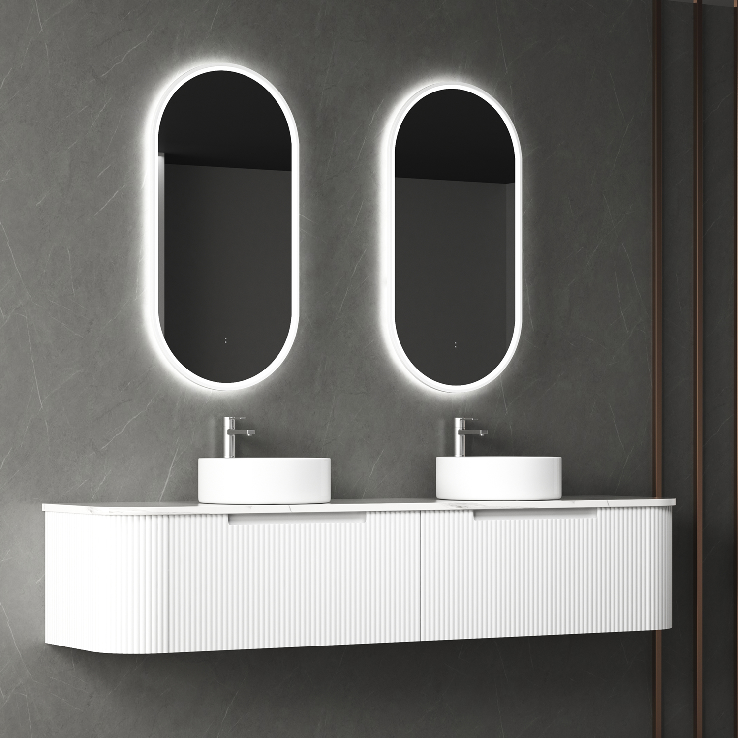 Havana 900mm Sable Walnut Fluted Wall Hung Fluted Curve Vanity