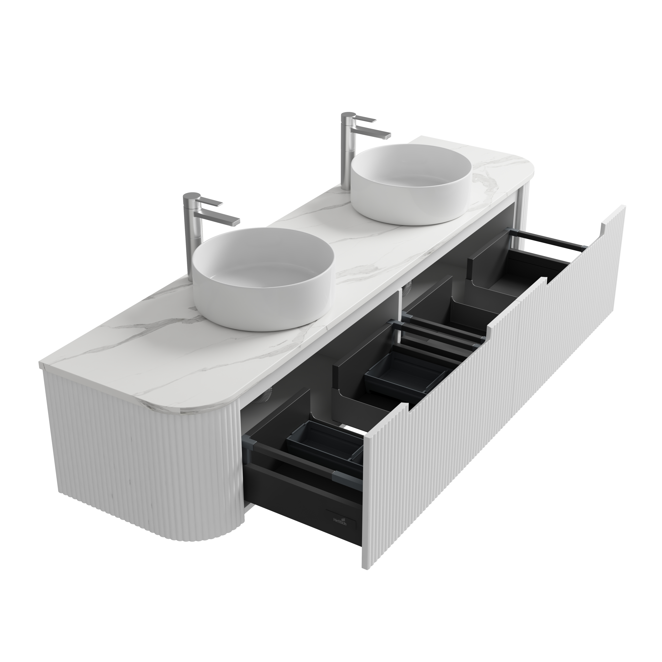 - All-drawers model with curved feature ends