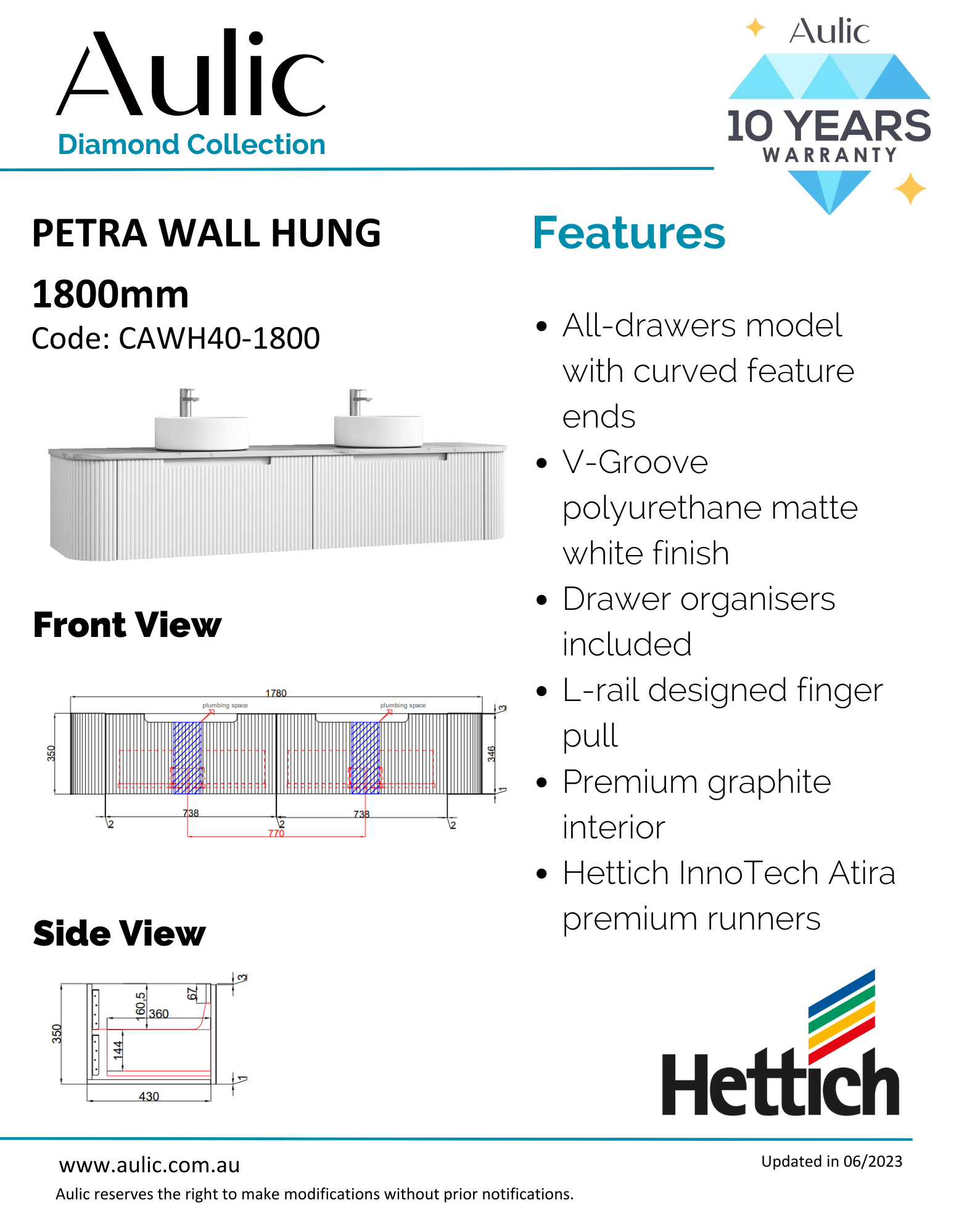 Petra Mark II Wall Hung 1800mm