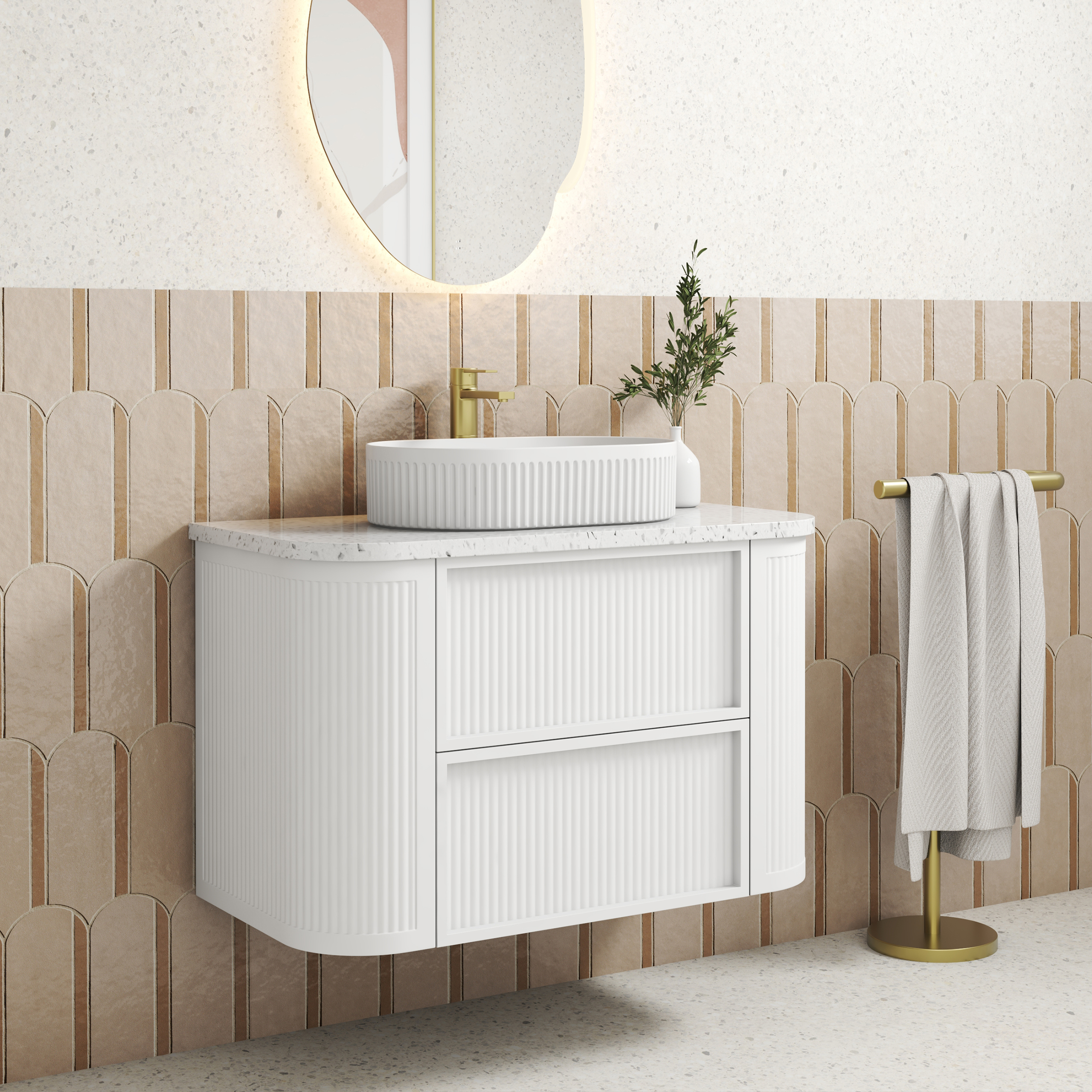 Ramee Fluted Wall Hung 900mm Matte White Cabinet