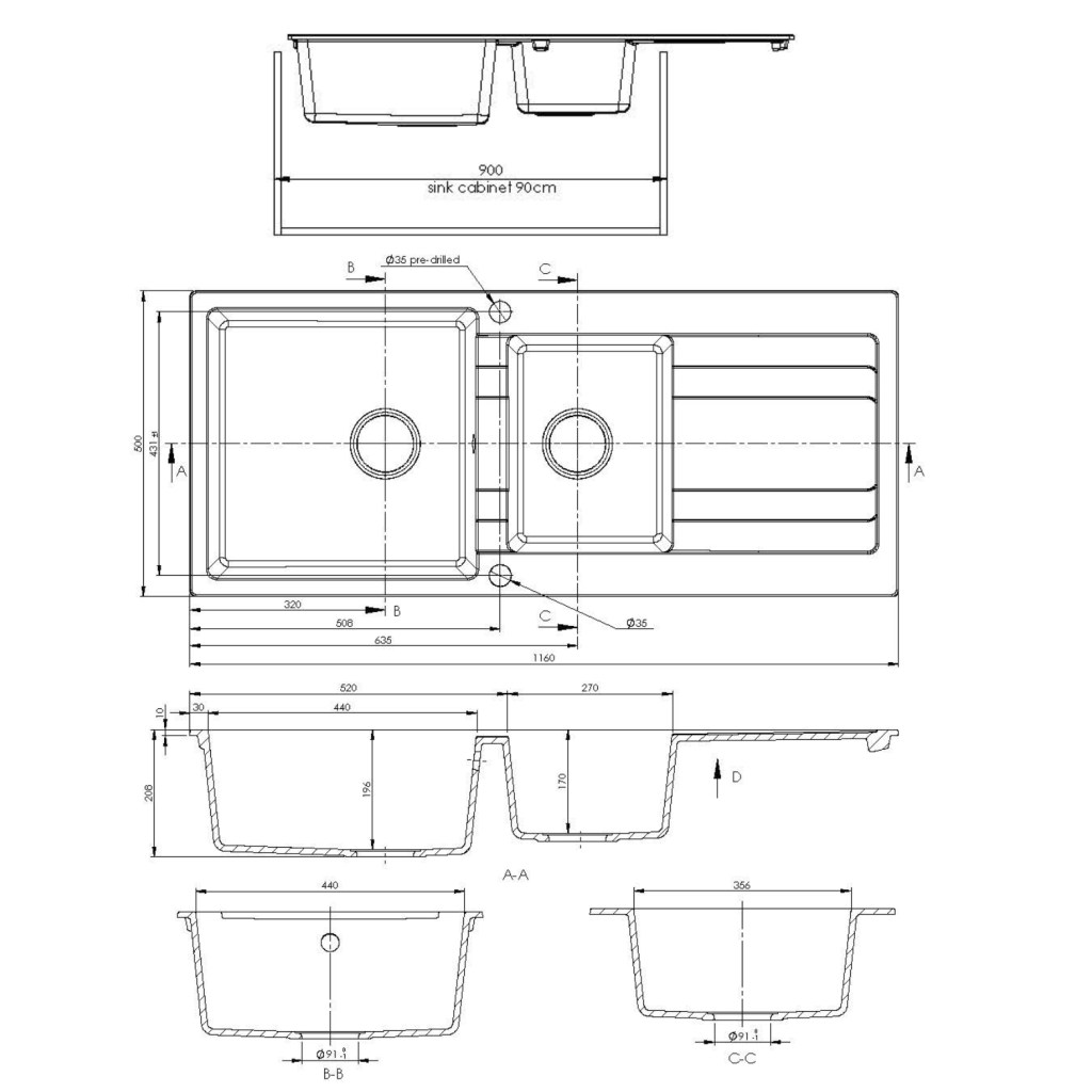 - Top Mount with drainer