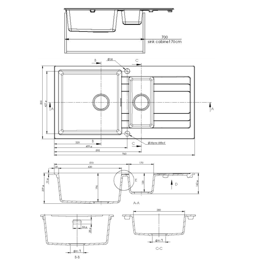 - 960 x 500 x 208/143mm