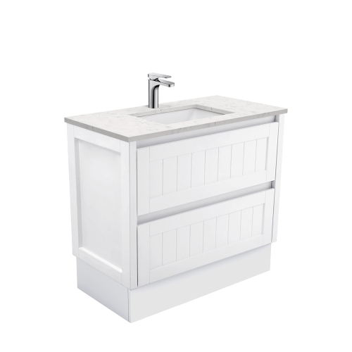 Hampton cabinets feature popular modern-vintage styling with beautifully routered drawer fronts and a smooth satin finish.