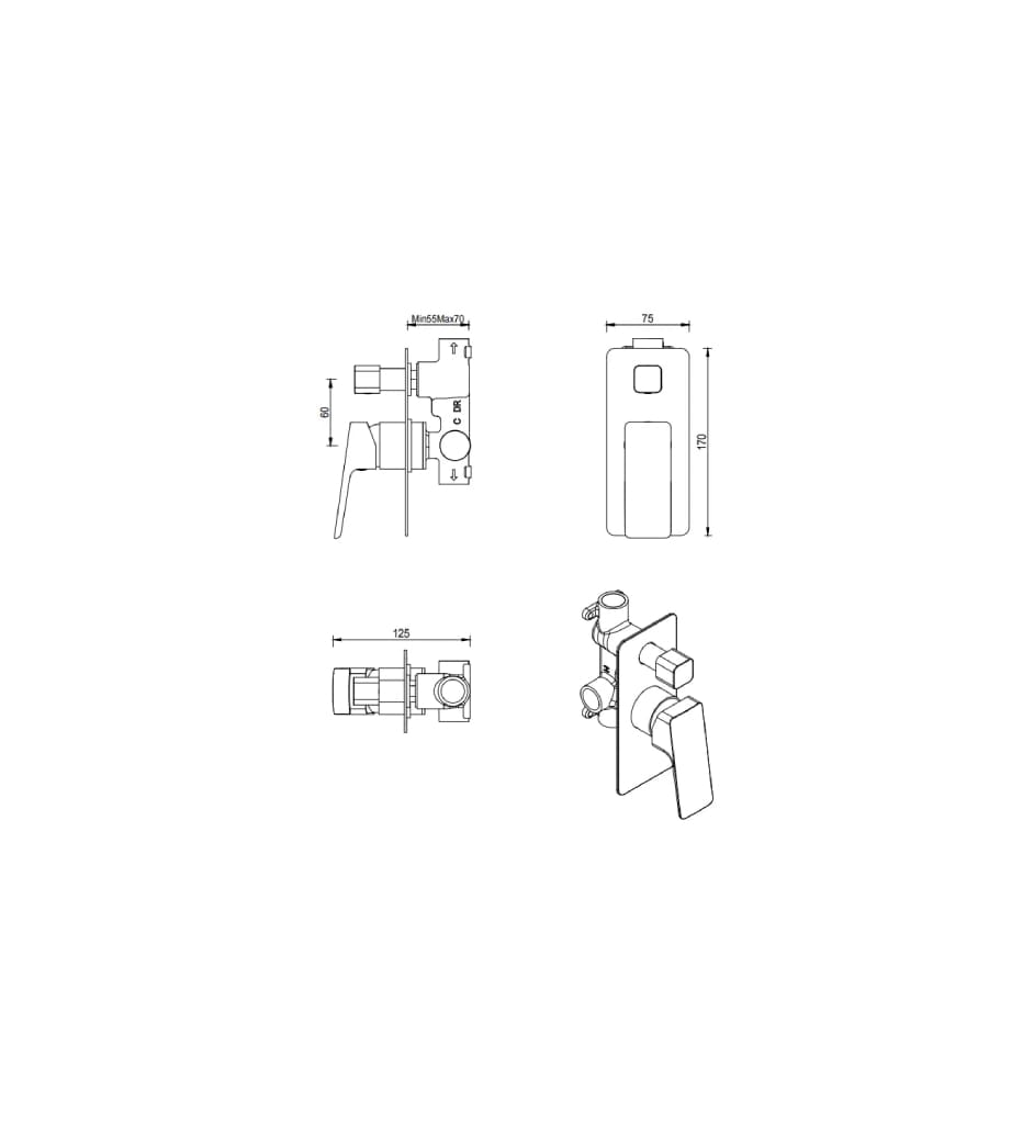Mica Shower Mixer Diverter – Sideways Reverse – TRIM KIT ONLY