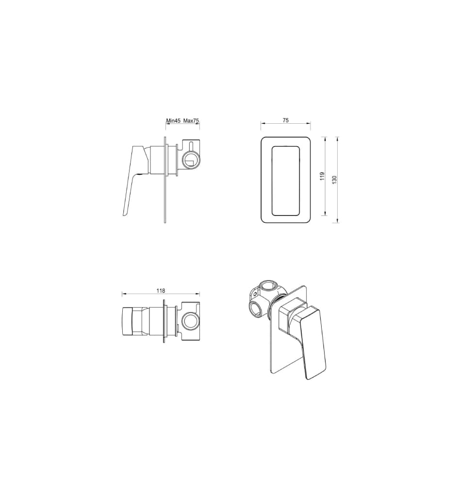 Mica Shower Mixer Diverter – Sideways – TRIM KIT ONLY