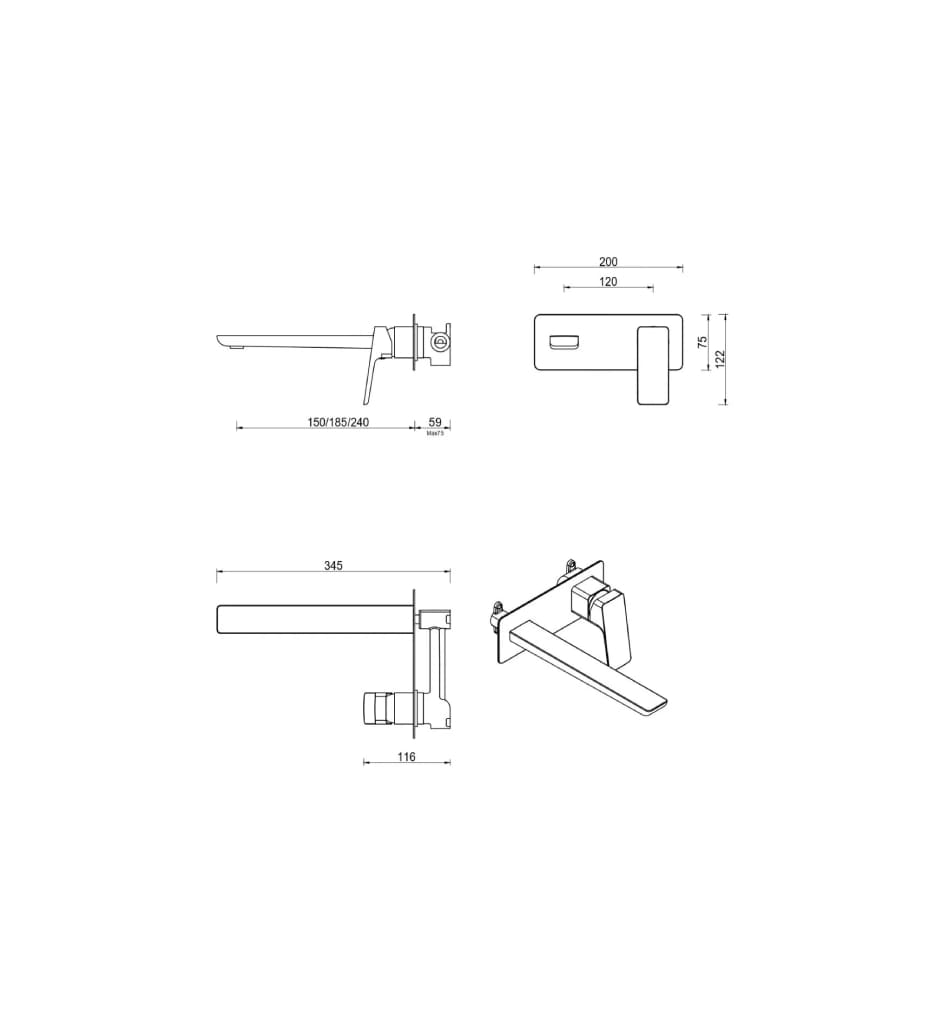 Eleniko Wall-Spout Combo – 2P – TRIM KIT ONLY